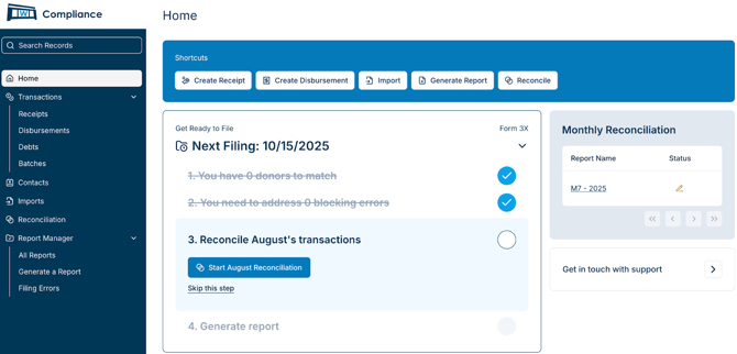 Warchest Compliance makes it simple to import contributions and disbursements, reconcile your transactions, and file compliance reports. Set up your account and get started!