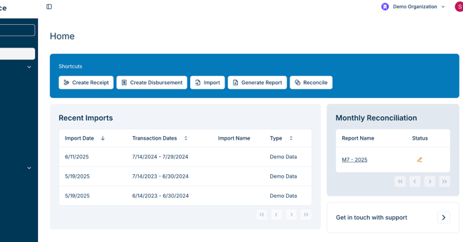 - Create Receipt. Use this feature to enter receipts that don’t automatically import with one of our integrations or on a CSV. You’ll want to use Import to add a CSV of transactions!